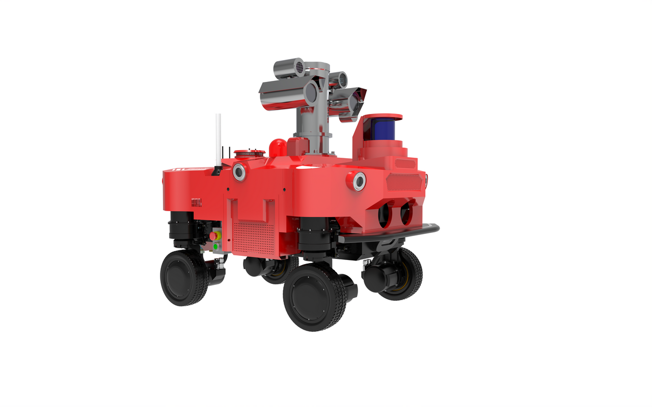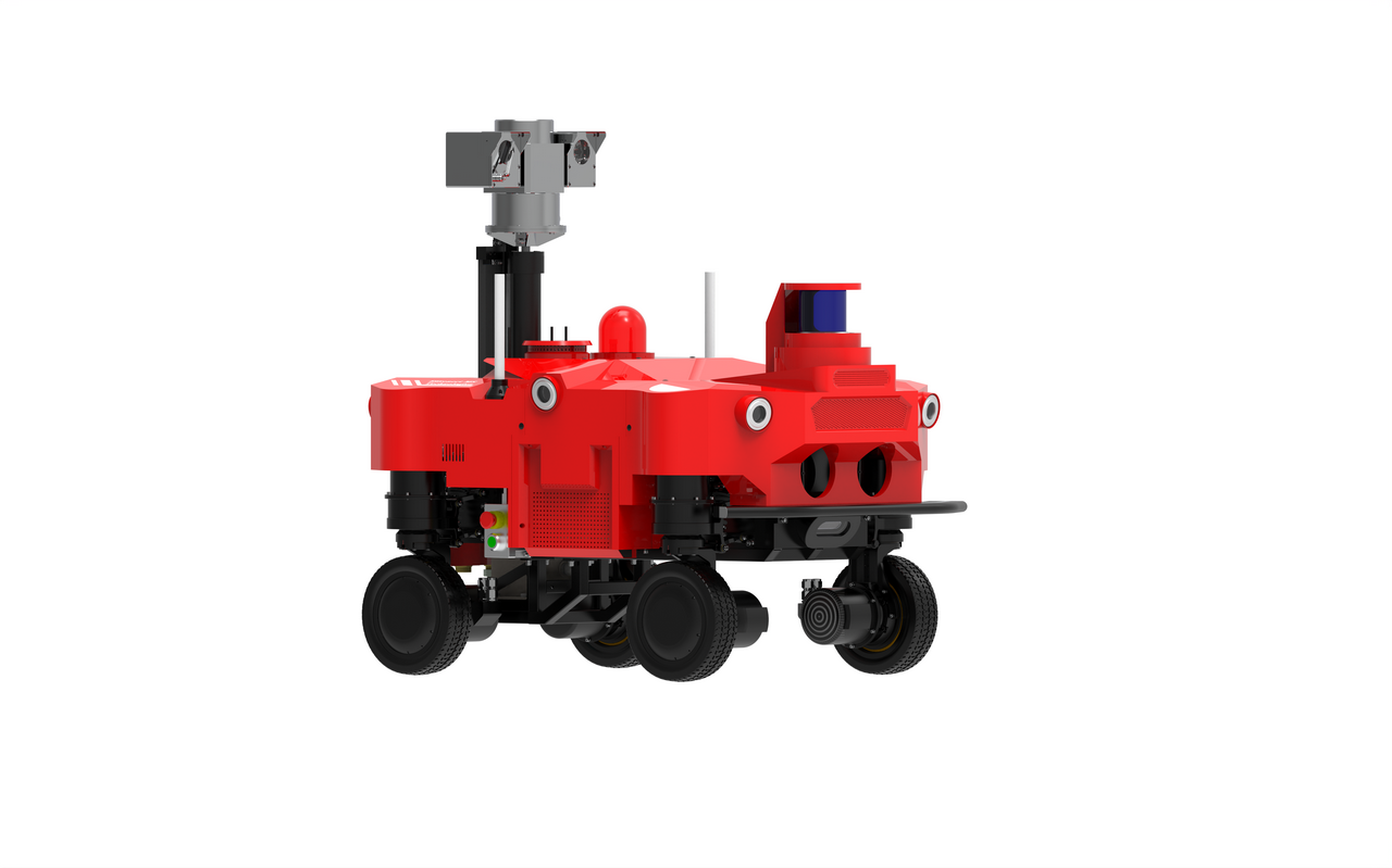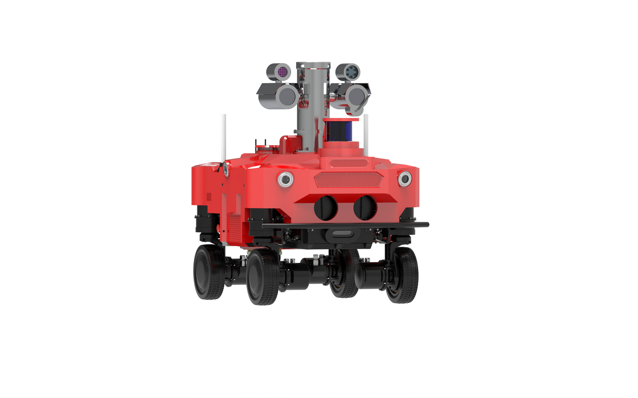 防爆轮式巡检机器人,采用四轮独立驱动方式,动力充足,适合 各种复杂路况。全防爆设计,已经取得防爆认证,防爆等级 II C,防 护等级 IP65,搭载多种防爆传感器,如激光雷达、四目云台、气体传感器、扬声器、声光报警器、拾音器等,支持自动巡检、远程遥控功能等多种模式,代替人工完成日常巡视、红外测温、仪表示数读取、气体泄漏检测及设备运行状态检测诊断等工作,实现区域全覆盖巡视。